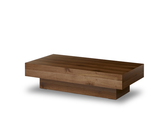 削ぎ落としたデザインのロータイプのセンターテーブル。すべての面に節入りの突板を貼り、綺麗に仕上げています。